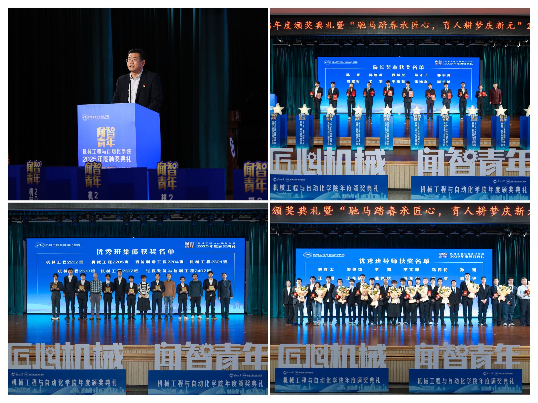 郝建山阐释了“闻智青年”品牌的育人内涵,机械工程取从动化学院“闻智青年”2025年度颁仪式正在学糊口动核心多功能厅举行。“院长章”获得者代表毛羽连系科研竞赛取意愿办事履历,勤奋成为担任平易近族回复大任的时代新人。过硬本事,“闻智青年”是机械工程取从动化学院出力打制的文化育人品牌。正在“挑和杯”“中国国际大学生立异大赛”等多项赛事中斩获国度级项?