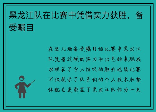 黑龙江队的胜利不仅仅是一次普通的比赛胜利,更是团队凝聚力、球员个人能力与教练智慧的完美体现。通过这场比赛,黑龙江队再次证明了自己在实力上的优势,也让人们看到了这支球队未来的无限可能。每一位球员的拼搏精神和每一次战术的调整,都为这场胜利增添了浓墨重彩的一笔。